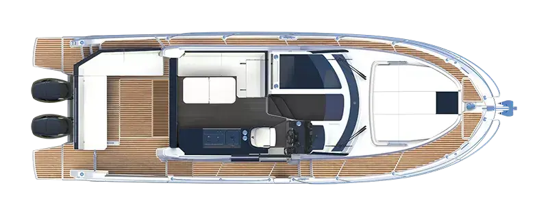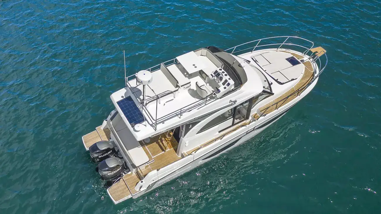 With a length overall of 11 metres, the flagship of the Antares line is the perfect illustration of a family cruiser. Stylish and contemporary, the powerboat focuses on space, comfort and safety.