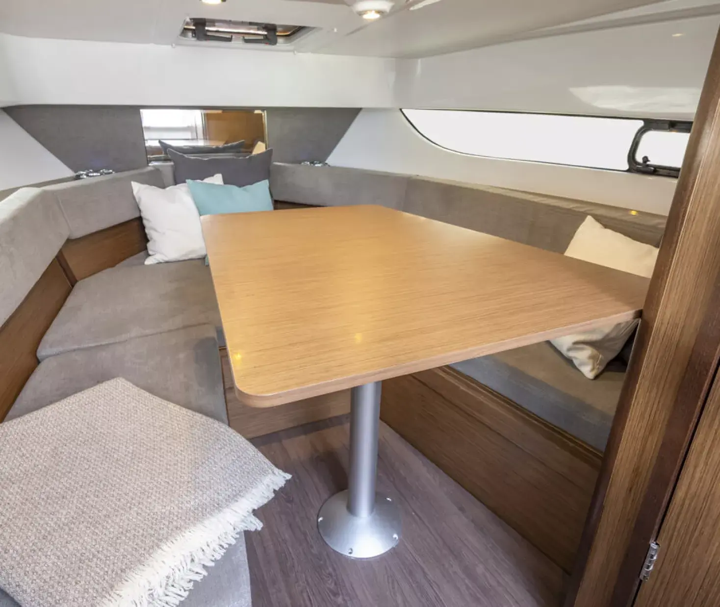 Space on board the Flyer 9 SUNdeck is cleverly optimized and the previous generation’s level of comfort improved. Boasting cutting-edge instruments and extra comfort, the pleasure of driving this boat is all about having a good time together in good company.