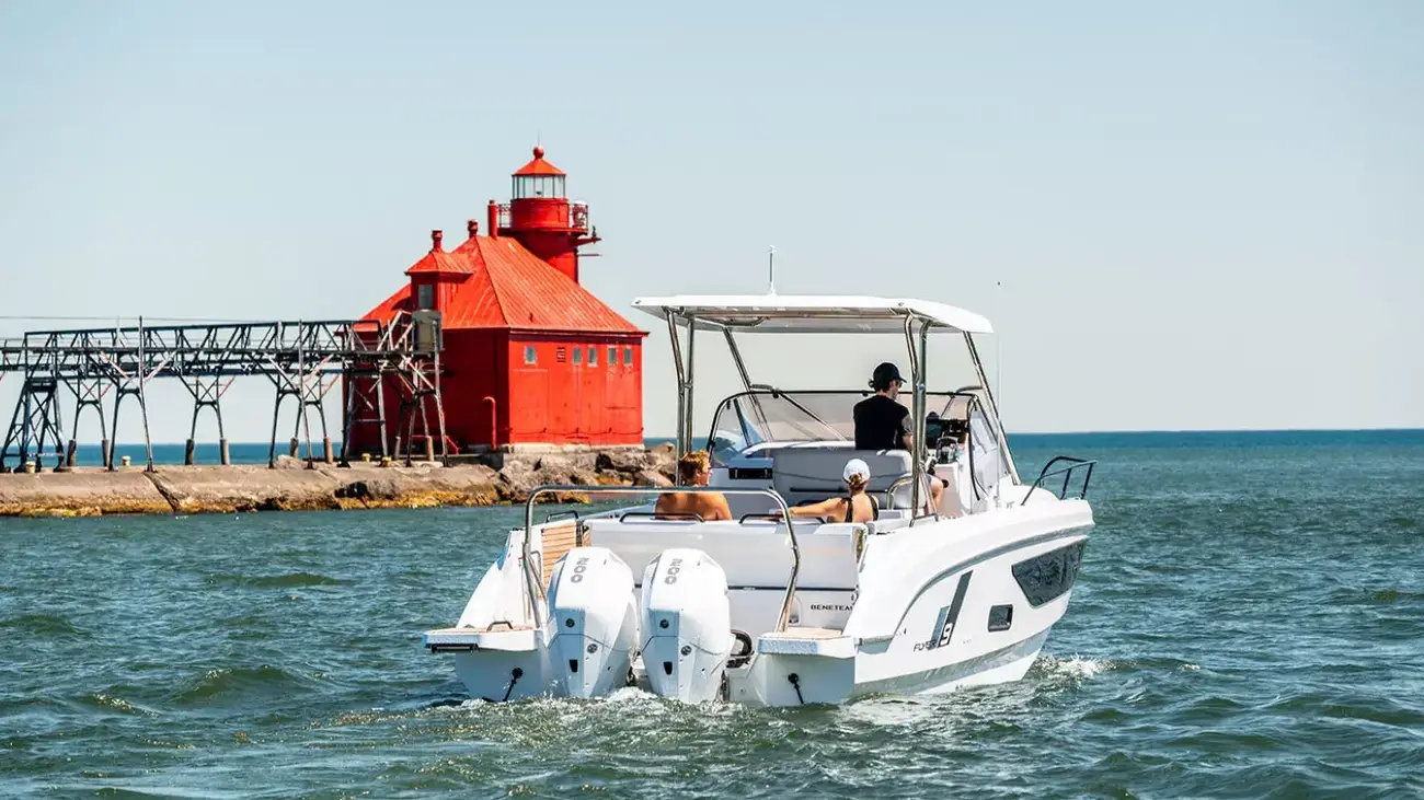 Optimized deck area, sporty design, the Flyer 9 SUNdeck is a wellcoming day-boat with neat finishes. By adopting the wide port forward Smart Walk around borrowed from the Flyer 10, the Flyer 9 offers excellent accessibility to the spacious front deck and great safety.