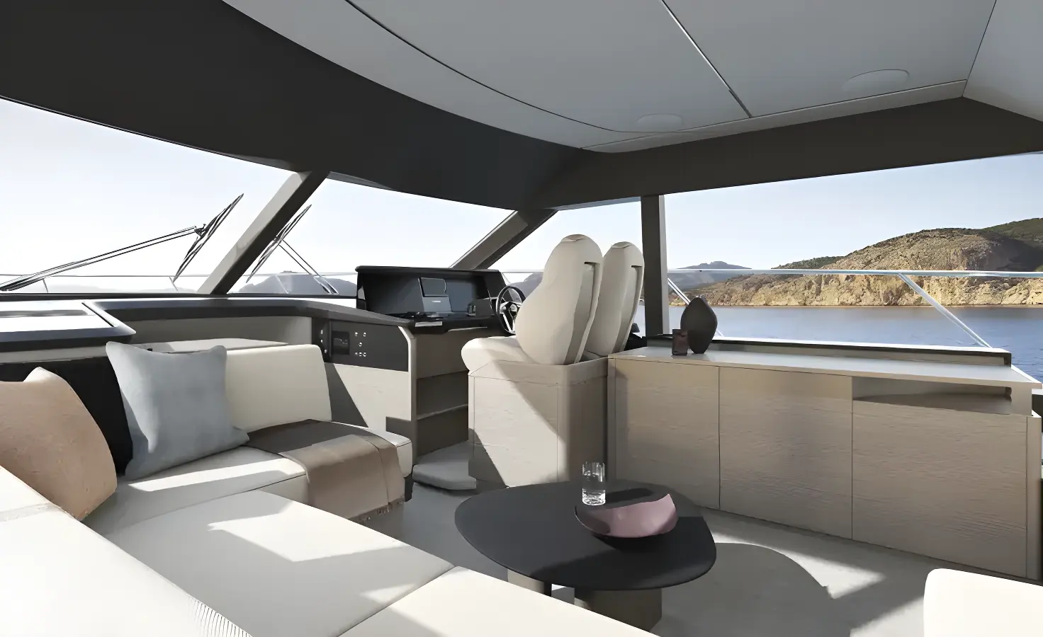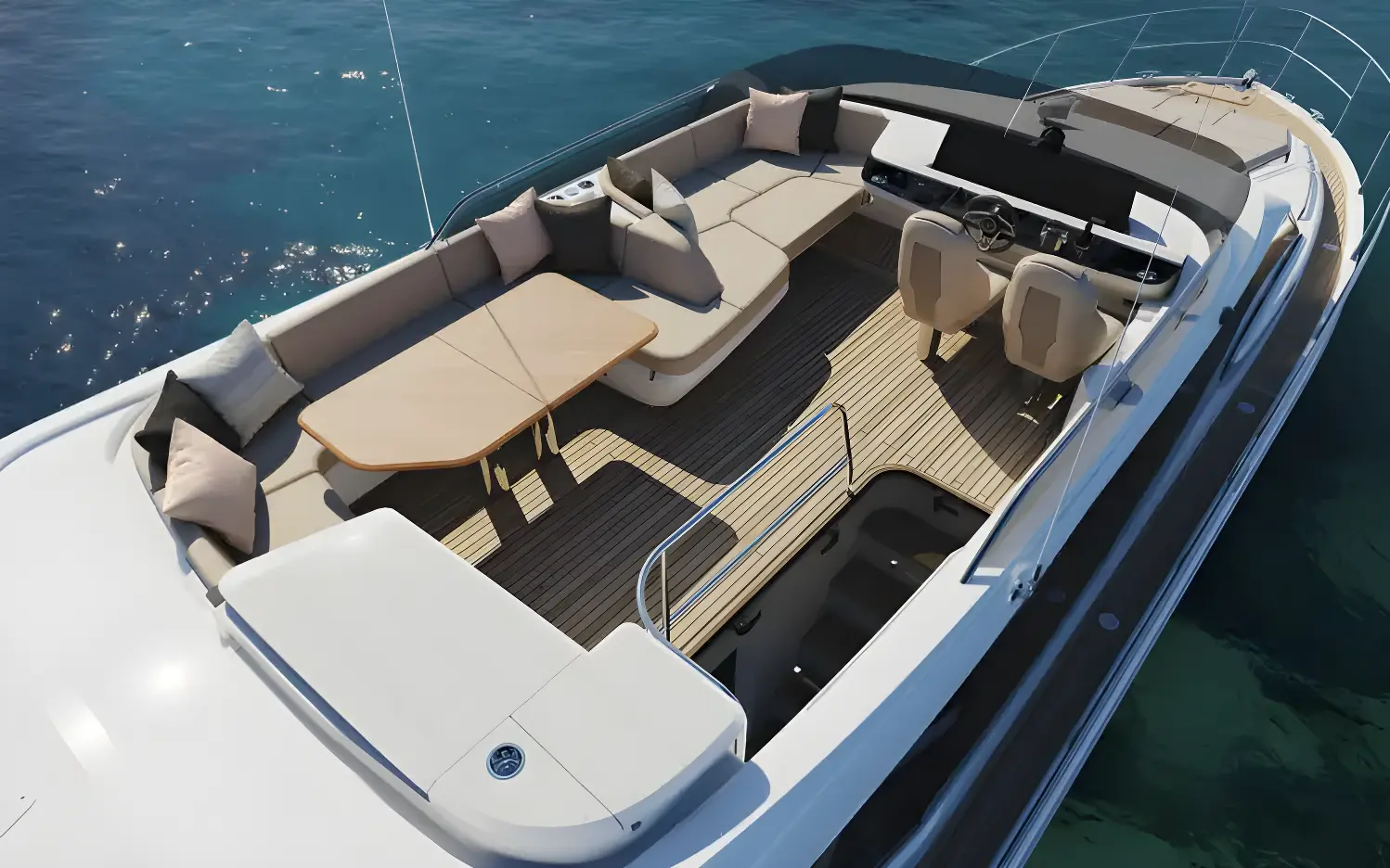 At the foredeck, owners can enjoy a redesigned sunpad with adjustable headrests, forward-facing seating, and the option of a removable teak table – perfect for relaxation or entertaining.