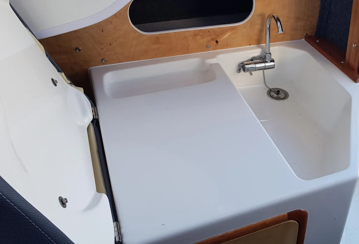 • Salon table that comfortably seats two and drops to form part of the berth.