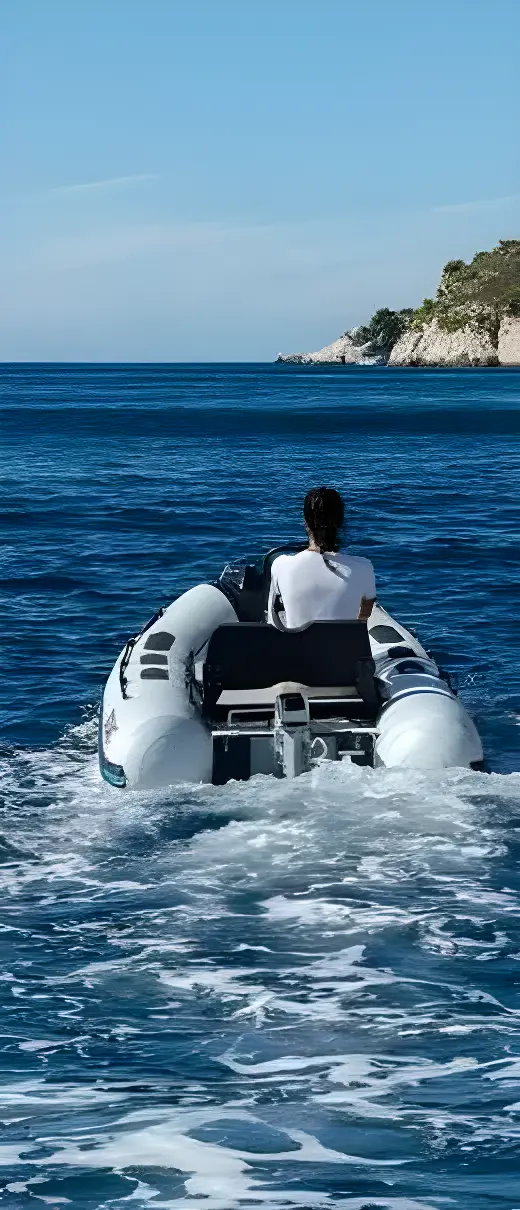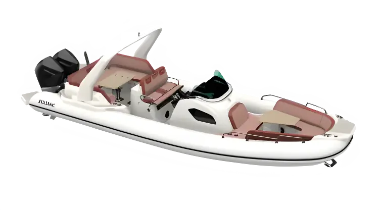 A spacious relaxation area for unforgettable days on the water. Double bow and rear U-Lounge, convertible to a sundeck area. Up to 14 seats in standard equipment, integrated kitchen with sink (optional : grill), console integrating a habitable cabin with toilets (optional : bunk bed space). Triple position bolster for up to two adults + one child. Rear bathing platforms giving access to the sea.