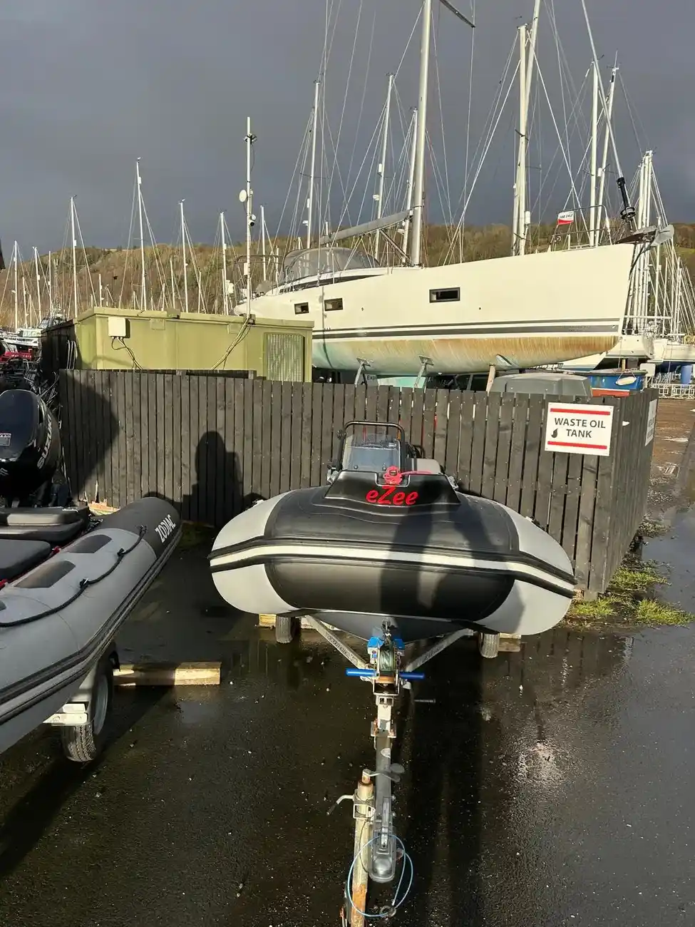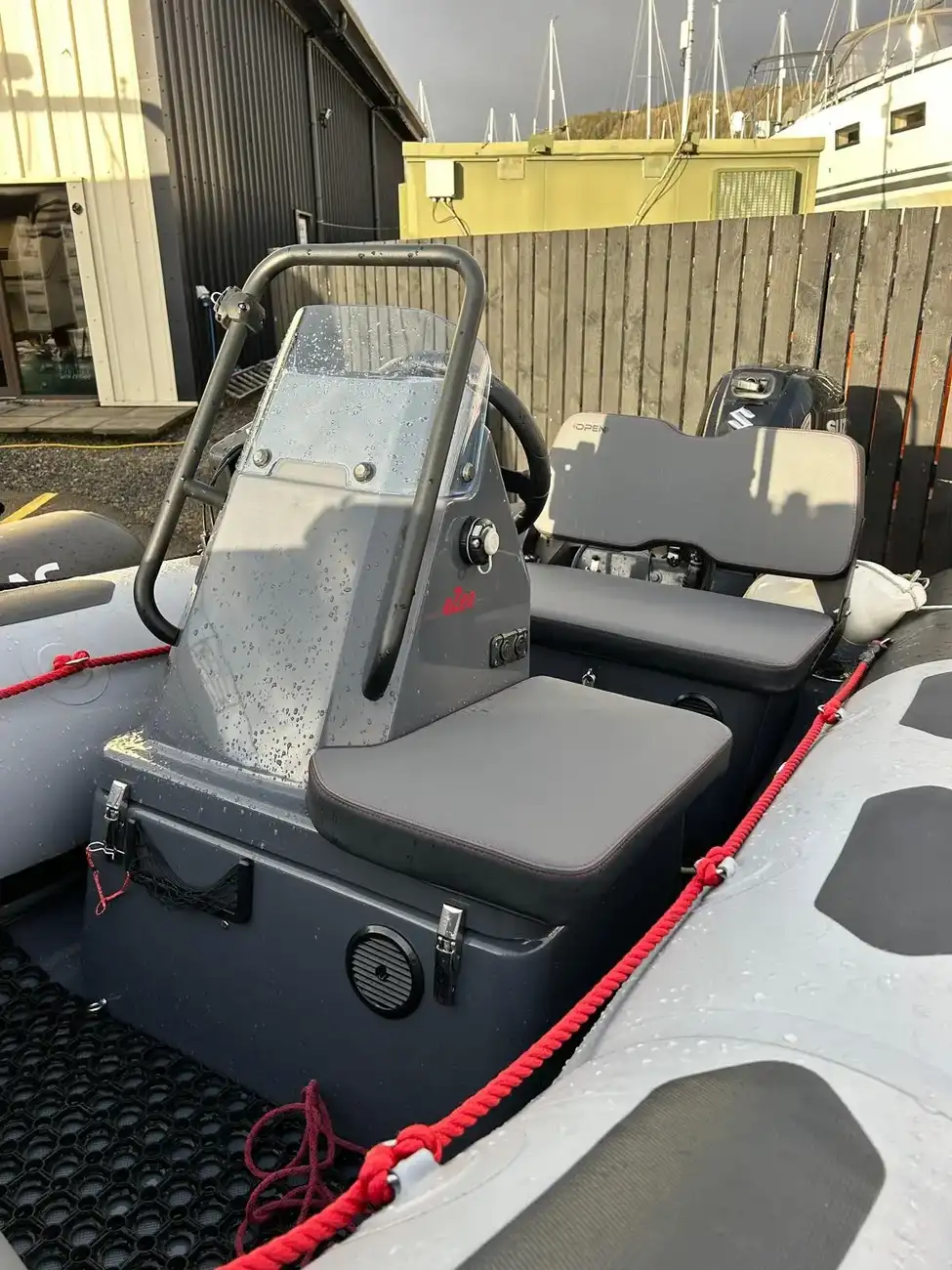 The Zodiac Open 3.4 is a compact RIB, with 4 seats. The onboard space is optimized, with a double rear bench seat, a side seat, and a bow cushion. Fitted with a Suzuki 30hp with only 3 hours and supplied on a roller trailer.