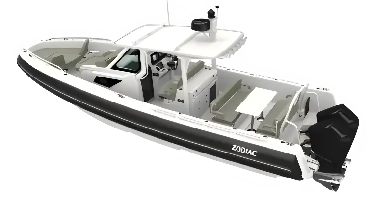 The largest boat ever built by Zodiac, the X10CC is THE boat for long, sunny days. Its generous deck space makes it easy to move around its equipment, whatever the number of passengers, which can be as many as 20. Its other assets? A double saloon that can be converted into a double sundeck, seating for between 10 and 13, a fully equipped kitchen, numerous easily accessible storage lockers and top-of-the-range features (folding seats, tinted portholes, topstitched upholstery, painted stainless steel, etc.). For those who don’t want to go back to port, there’s a cabin with a comfortable berth and bathroom…